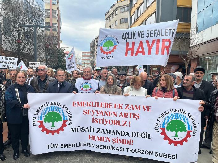 Tüm Emekliler Sendikası Trabzon Şubesi, emeklilerin yaşadığı geçim sıkıntısına dikkat çekmek amacıyla “Emeklilere ek zam ve seyyanen artış istiyoruz” konulu bir basın açıklaması düzenledi. Trabzon Meydan Parkı’nda gerçekleştirilen ve yoğun katılımın olduğu eyleme CHP Trabzon Milletvekili Sibel Suiçmez de katılarak destek verdi.