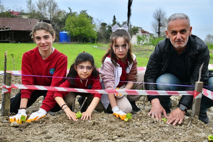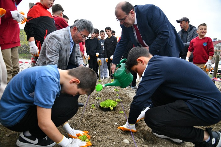 ‘Ortaokul Öğrencilerine Sebze Yetiştiriciliği Bilgi ve Beceri Edindirme Projesi’ kapsamında Akyazı Ortaokulu öğrencileri marul dikip, semizotu, dereotu ve roka tohumu ekti.