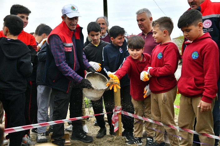 ÖĞRENCİLER FİDAN DİKTİ, TOHUM EKTİ