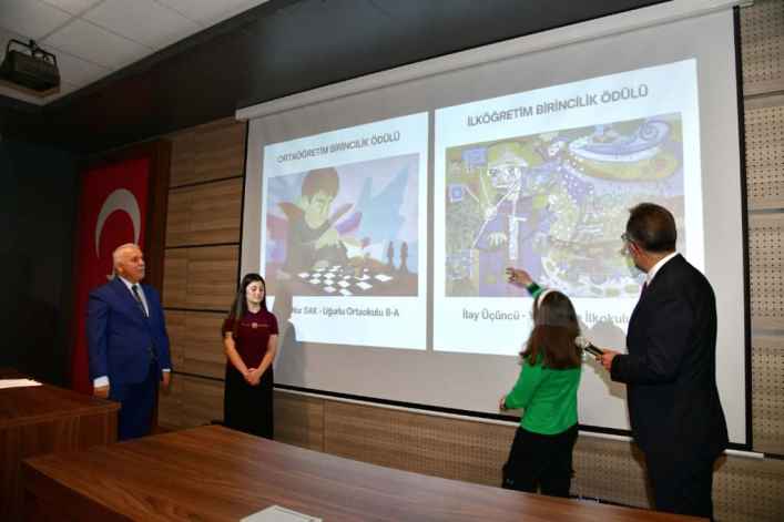Ödül takdiminin ardından, Vali Yıldırım ve beraberindekiler öğrencilerin hazırladığı eserlerin yer aldığı sergiyi gezerek çalışmalar hakkında bilgi aldı.
