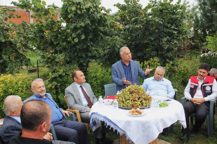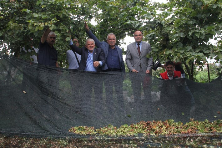 Konuşmaların ardından davetlilerin katılımıyla örtü sistemi kurulan bahçede sembolik fındık hasadı gerçekleştirildi.