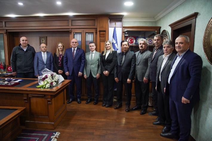 Trabzon Defterdarı Ramazan Yaşar, Grup Müdürü Ahmet Zeki Cinoğlu, Muhasebe Müdürü Türkay Albayrak, Birim Müdürleri Havva Ertem ve Birnaz Yılmaz, 36’ncı Vergi Haftası etkinlikleri kapsamında Trabzon Esnaf ve Sanatkarlar Odaları Birliği’ni ziyaret ederek Başkan Metin Kara ve yönetim kurulu üyeleriyle görüştü.