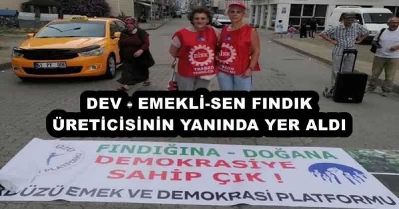 DEV – EMEKLİ-SEN olarak katıldık Fındık üreticisinin emeğinin hiçe sayılmasına doğamızın ve yaşam alanlarımızın sermayeye peşkeş çekilmesine demokrasinin yok sayılmasına karşı bütün STK larla birlikte sesimizi yükselttik