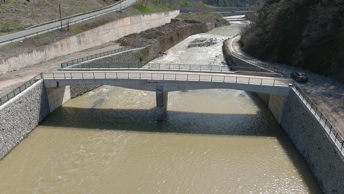 2024 yılında Trabzon, Rize, Giresun, Gümüşhane ve Bayburt illerine toplamda 7,5 milyar TL yatırım yapan DSİ 22. Bölge Müdürlüğü, Doğu Karadeniz’in zorlu coğrafyasında 2024 yılında 75 adet taşkın kontrol inşaatını tamamladı. Bu taşkın kontrol inşaatlarının muhtevasında yapılan araç ve yaya köprüleriyle de vatandaşlarımızın günlük yaşamı oldukça kolaylaştırılıyor. İnşa edildikleri yere ayrı bir güzellik katan bu estetik ve emniyetli köprüler, kesit itibari ile taşkınlarla mücadele konusunda önemli avantajlar sağlarken, çoğunlukla kemer köprü şekilde inşa edilmeleri yönüyle de vatandaşlarımızın takdirini topluyor. Ecdadımızın mirasına onların mimari anlayışı ile sahip çıkan DSİ, bu köprülerle Trabzon şehir merkezi ile birlikte ilçelerin de çehresini değiştiriyor.