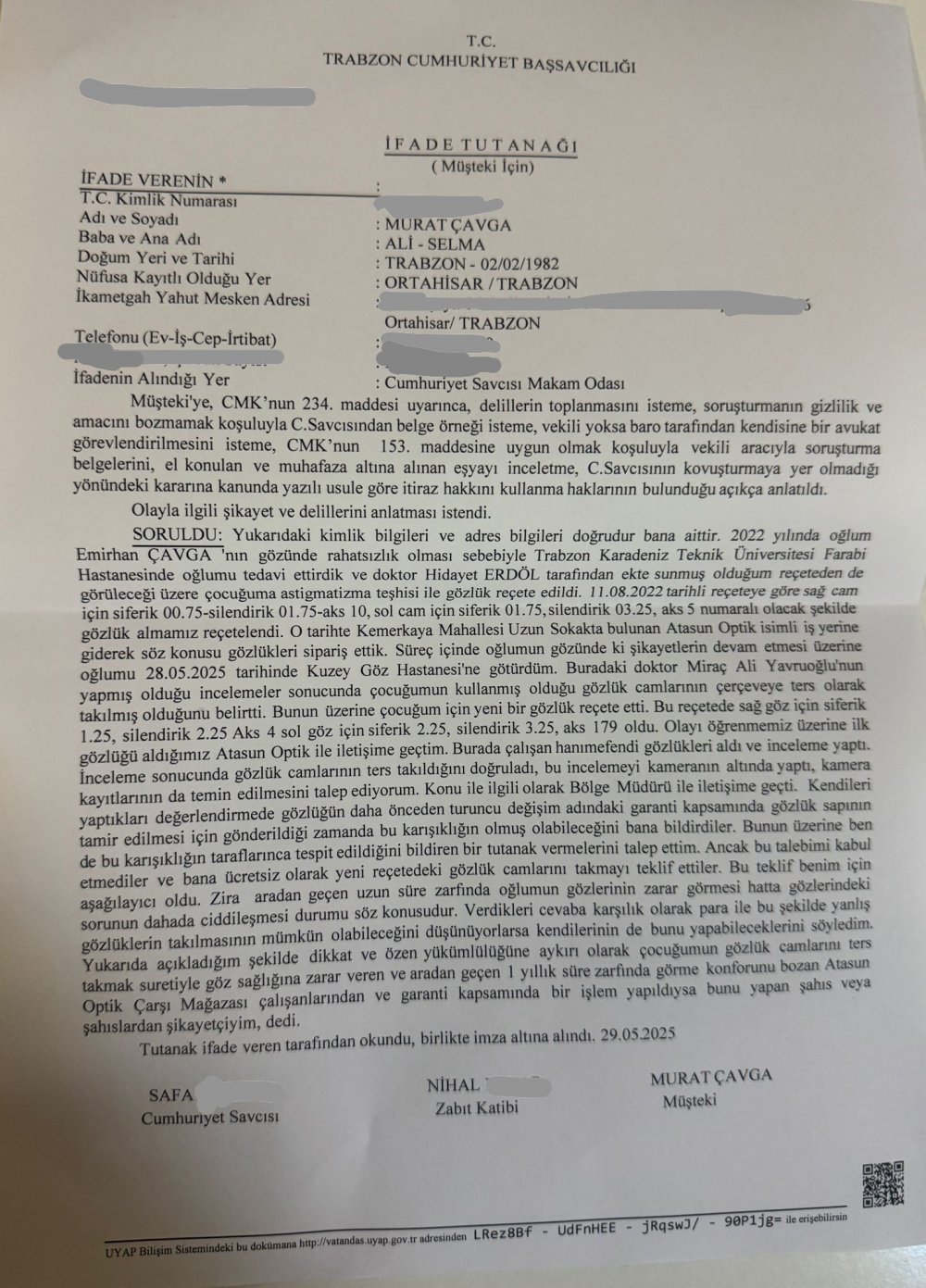 Bu paylaşımı bir para talebi için değil, başka çocuklar zarar görmesin diye yapıyorum. Eğer siz de Atasun Optik’ten çocuğunuza gözlük aldıysanız, camları mutlaka kontrol ettirin. Çünkü çocuklar bunu fark edemez…