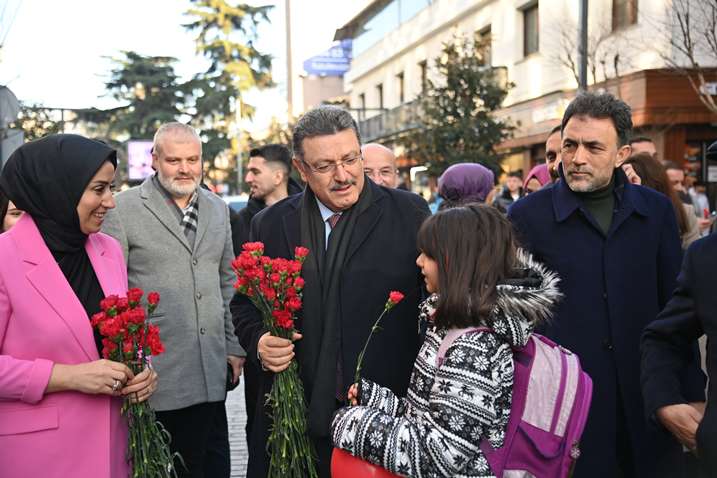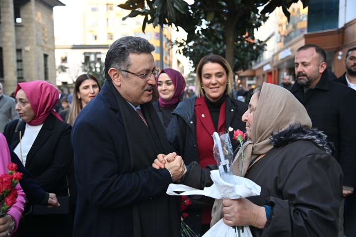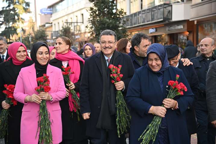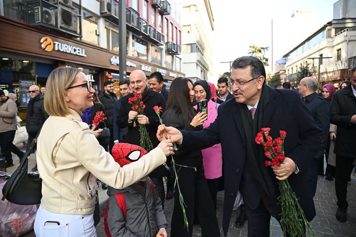 Kahramanmaraş Caddesi ile Uzun Sokak’ta gerçekleşen etkinlikte kadınlara çiçek takdim eden Başkan Genç, kadınların toplumdaki önemine vurgu yaptı.