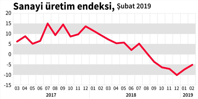 Türkiye İstatistik Kurumu, şubat ayına ilişkin sanayi üretim endeksi sonuçlarını açıkladı. Buna göre, arındırılmamış sanayi üretim endeksi, şubatta geçen yılın aynı ayına göre yüzde 5,1 düşüş gösterdi. Bu dönemde 100 olarak hesaplanan endeks, geçen yıl şubatta 105,3 seviyesinde bulunuyordu.