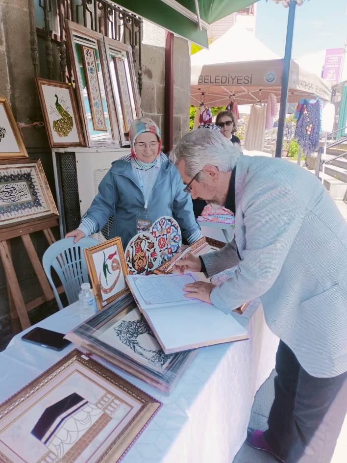 Tezhip Sanatçısı Neriman Turan da birbirinden güzel eserleriyle Standını açtı.