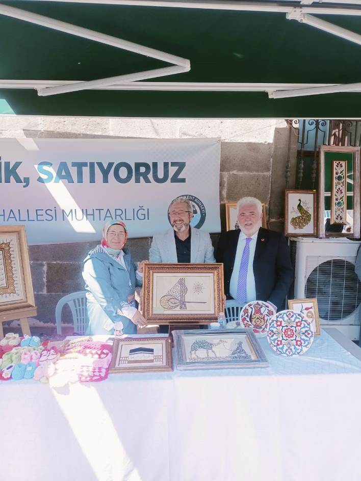 Standı ziyaretimizde Cumhuriyet Mahallesi Muhtarı Kadir Sert Bey de stant da katkı sunanlarla beraber hazır bulunuyordu.