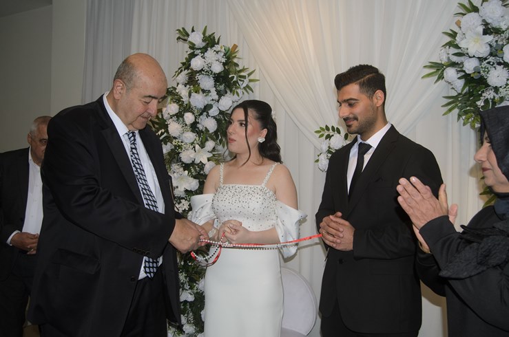Eyşan ve Muhammet Zeki’nin nişan yüzüklerini Eyşan’ın amcası Ortahisar Gazeteciler Cemiyeti Başkanı Birahim Hakkı Emiroğlu taktı. Emiroğlu, “Yeğenim bizim elimizde büyüdü. Emiroğlu ailesi olarak büyük bir aileyiz. Ailemiz daha da büyüyor. Türkiye’nin her yerinde dostluklarımız vardı. Şimdi de Şanlıurfa ile aile bağımız oldu. Gençlere ömür boyu mutluluk diliyorum” dedi.