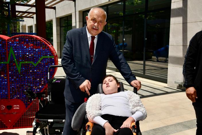 Katı atıkların geri dönüşümüyle elde edilen üç adet tekerlekli sandalyenin özel gereksinimli bireylere hediye edildiği törende konuşan Gülay, emeği geçen tüm kişi ve kurumlara teşekkür etti.