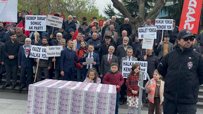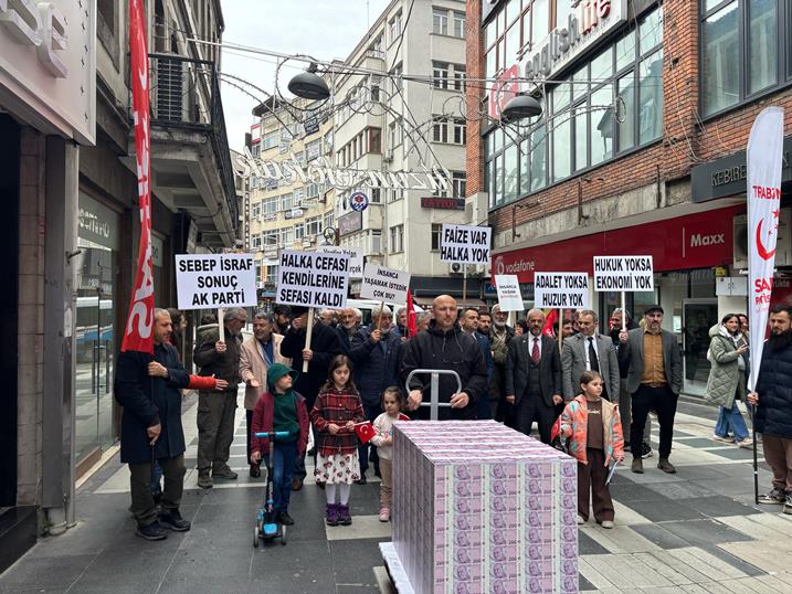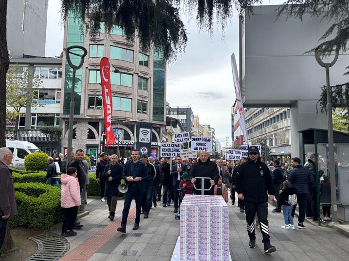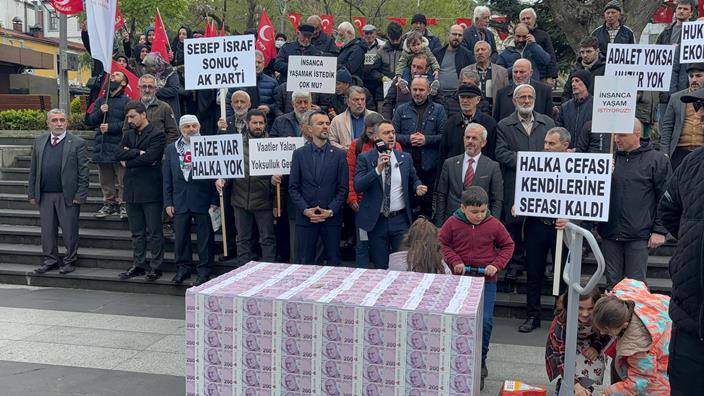 Yanımızda gördüğünüz üzere  bir transpalet ve balya balya paralar var. Belki ilk bakışta oyuncak gibi görünüyor olabilir. Ama bu araçlar, Türkiye’nin sırtına yüklenen devasa faiz yükünün sembolüdür. Bu transpalet’in taşıyacağı yük, sadece sembolik değil; yıllardır alın terimizle ödediğimiz, çocuklarımızın geleceğinden çalınan paraların ta kendisidir.