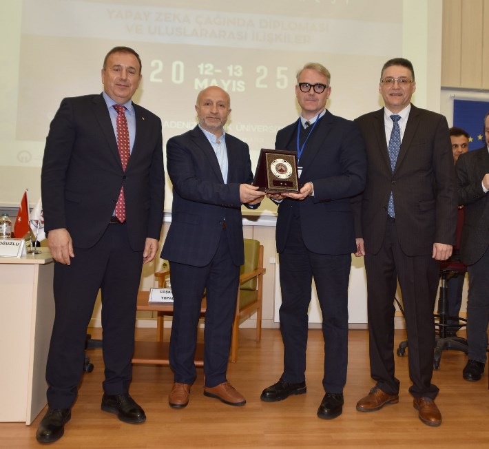 Avrupa Birliği Türkiye Delegasyonu İletişim Bölüm Başkanı Ramunas Janusauskas, yapay zekanın diplomasi alanındaki dönüştürücü etkisine dikkat çekerek, “Yapay zeka teknolojilerinin hızlı gelişimi, diplomasi dünyasında da köklü değişimlere yol açtı ve bu değişim uluslararası ilişkileri önceki dönemlerden çok daha öngörülemez bir noktaya taşıdı. Günümüzde teknoloji bu öngörülemezliği daha da derinleştiriyor. Karmaşık algoritmalar sosyal medyada yankı odalarını güçlendiriyor, gelişmiş botlar insan davranışlarını neredeyse mükemmel şekilde taklit edebiliyor ve deepfake teknolojileri gerçek ile kurgu arasındaki çizgiyi tehlikeli biçimde bulanıklaştırıyor. Bu yeni düzende, uluslararası kuralların, etik standartların ve küresel iş birliğinin önemi her zamankinden daha kritik hale geldi. Bu düzenlemelere yalnızca teknolojik gelişmeleri yakalamak için değil, aynı zamanda bu gelişmelerin geleceğini şekillendirmek için de ihtiyacımız var. Avrupa Birliği, bu karmaşık zorluğu ciddiyetle ele almış durumda” dedi.
