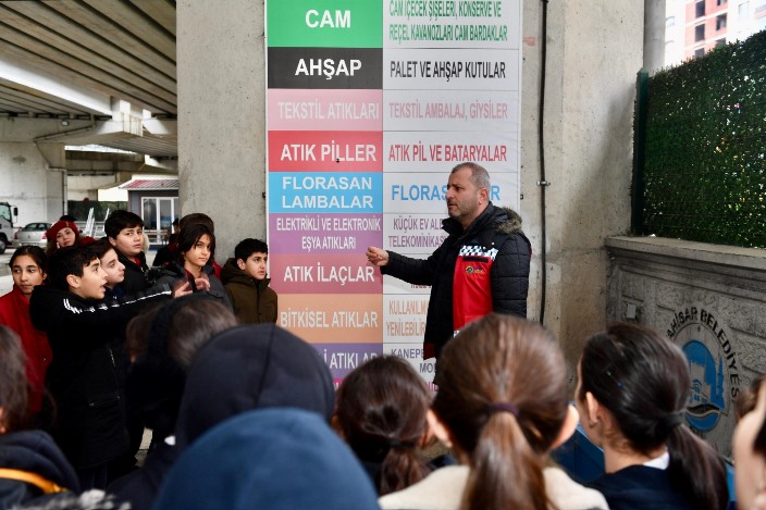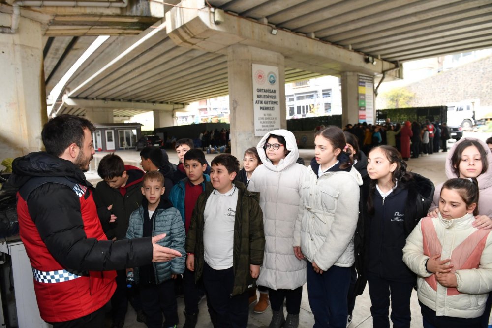 İklim Değişikliği ve Sıfır Atık Müdürlüğü ekipleri, Akyazı Mahallesi’nde Kanuni Bulvarı Akyazı Viyadüğü altında bulunan Atık Getirme Merkezi’ni ziyaret eden Osman Altıntaş Ortaokulu’ndan 150 öğrenciye, geri dönüşüm süreçleri hakkında bilgilendirme yaptı. Öğrencilerin gerçekleştirdiği ziyarete, Ortahisar Belediye Başkan Yardımcısı Özer İskender, İklim Değişikliği ve Sıfır Atık Müdürü Ezgi Kazan, müdürlükte görev yapan çevre mühendisleri ve öğretmenler eşlik etti.