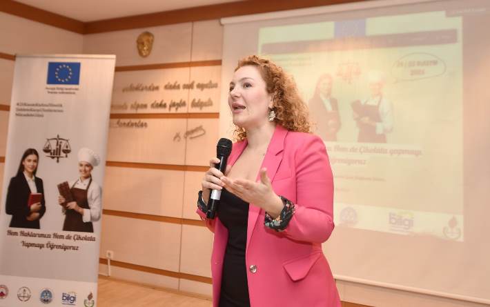 Açılış konuşmalarının ardından Trabzon Barosu avukatlarından Hande Burma, genç kızların karşılaşabileceği olası riskler karşısında neler yapabileceklerine ilişkin kapsamlı bilgiler verdi. Son yıllarda dijital dünyada ve sosyal ilişkilerde giderek yaygınlaşan yeni şiddet biçimlerine dikkat çeken Burma, özellikle akran zorbalığı, ısrarlı takip, siber taciz ve duygusal manipülasyon gibi konularda gençleri bilgilendirdi. Burma, genç kızların haklarını bilmelerinin ve gerektiğinde doğru mekanizmalara başvurabilmelerinin hayati önem taşıdığını ifade etti.