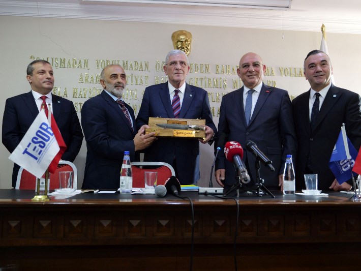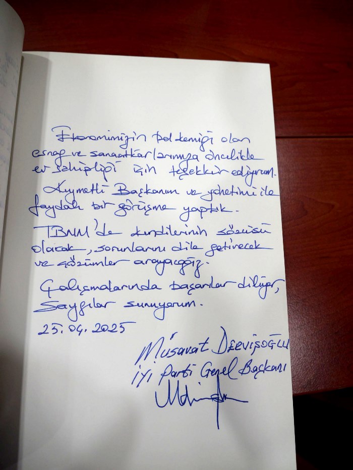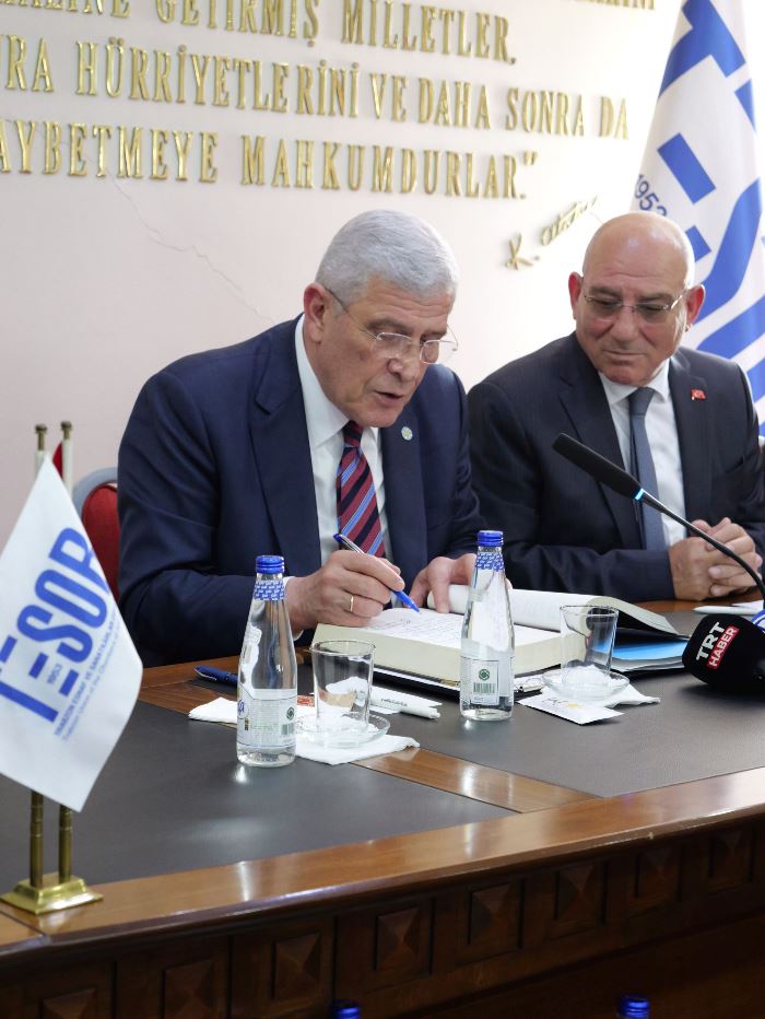 İYİ Parti Genel Başkanı Müsavat Dervişoğlu toplantının sonunda TESOB hatıra defterini imzaladı.