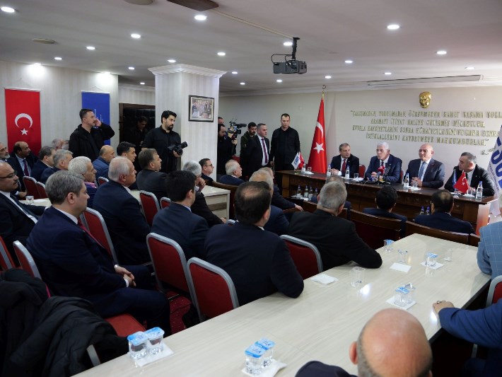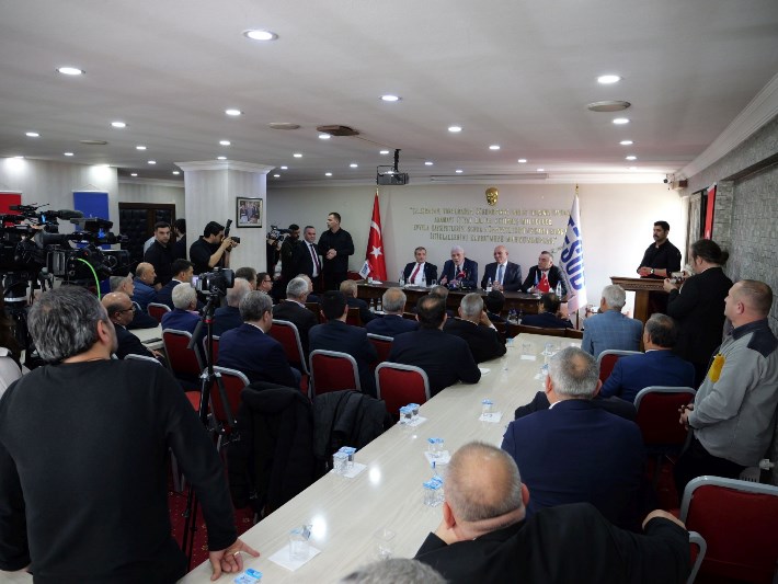 TESOB Başkanı Metin Kara, yönetim kurulu üyeleri ve oda başkanları tarafından karşılanan Müsavat Dervişoğlu’na ziyaretin anısına Trabzon bakır sanatı örneği ibrik takdim edildi. Sürmene Şoförler ve Otomobilciler Esnaf Odası Başkanı Ekrem Yılmaz da Sürmene bıçağı takımı armağan eti.