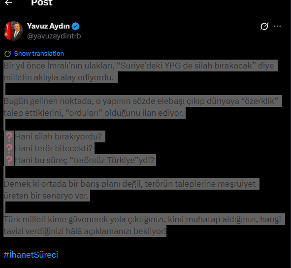 Türk milleti kime güvenerek yola çıktığınızı, kimi muhatap aldığınızı, hangi tavizi verdiğinizi hâlâ açıklamanızı bekliyor!