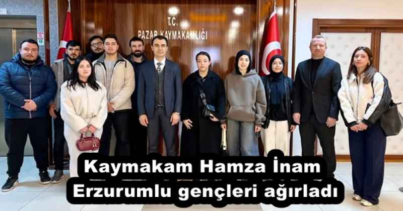 Erzurumlu gençler Etkinlikler çercevesinde Rize’nin Pazar ilçesi Kaymakamı Hamza İnam’ da ziyaret ettiler.Kaymakam İnam “Palandöken’den Fırtına Deresi’ne Gençlik Köprüsü Projesi” kapsamında Erzurum’dan ilçeye ziyarete gelen gençleri makamında ağırladı.