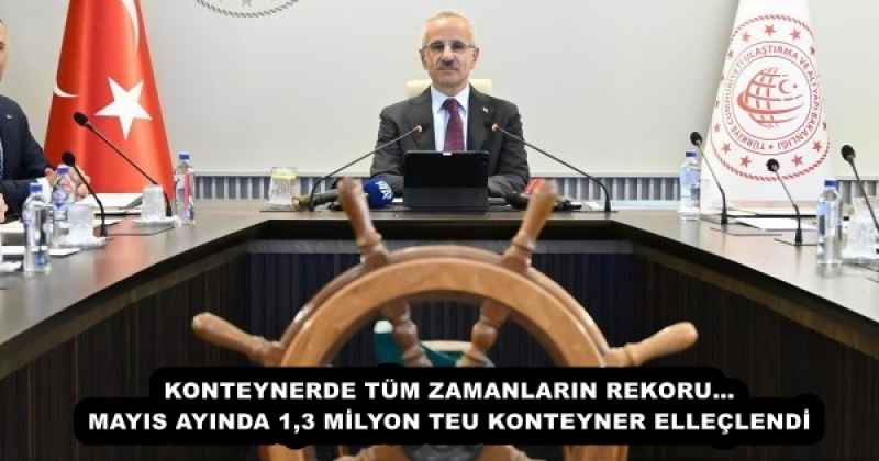 Ulaştırma ve Altyapı Bakanı Abdulkadir Uraloğlu, “Mayıs ayında limanlarda elleçlenen konteyner miktarı geçen yılın aynı ayına göre yüzde 17,6 artarak bir milyon 366 bin 430 TEU’ya ulaştı. Böylece bir ayda limanlarımızda elleçlenen en yüksek konteyner miktarına ulaşarak tüm zamanların rekorunu kırdık.” dedi.