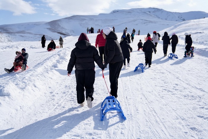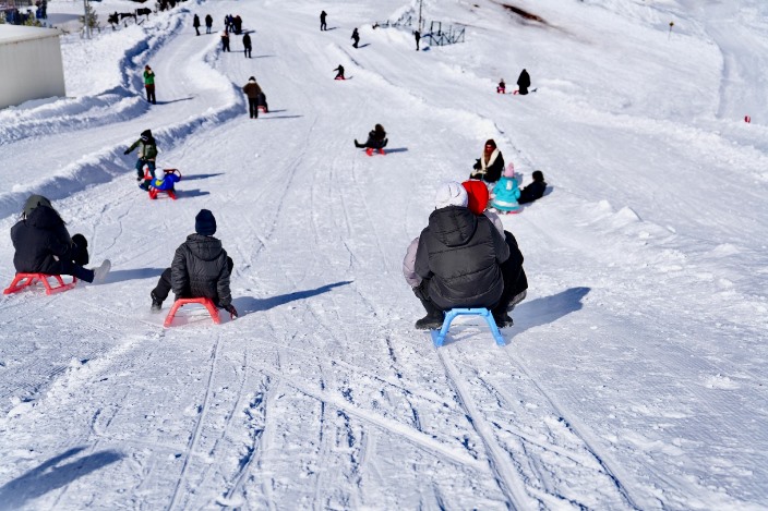 Kızakla kayak yapan ve kartopu oynayan çocuklar gönüllerince eğlenerek unutulmaz bir gün yaşadı.