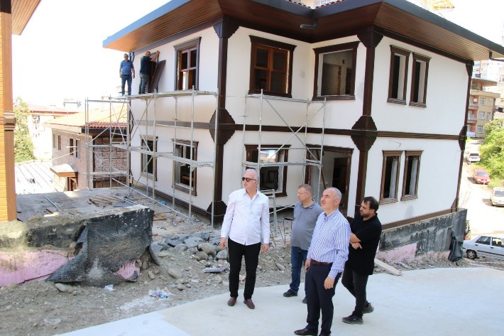 RİZE-Rize Belediye Başkanı Rahmi Metin Belediye Başkan Yardımcısı Muhittin Aydın Bilsel ile birlikte merkez postane arkasında Rize mimarisi yansıtılarak yapımı devam eden “Kültür ve Sanat Sokağı” inşaat alanında incelemede bulunarak çalışmalarda gelinen son durumla ilgili teknik ekiplerden bilgi aldı.