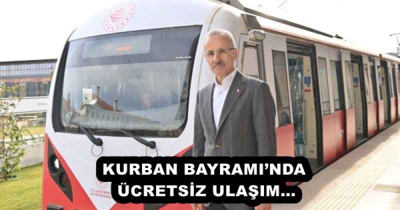 Ulaştırma ve Altyapı Bakanı Abdulkadir Uraloğlu, Kurban Bayramı’nda Karayolları Genel Müdürlüğü sorumluluğundaki otoyollar ve boğaz köprüleri ile birlikte Başkentray, Marmaray, İZBAN, Sirkeci-Kazlıçeşme ile Gayrettepe-İstanbul Havalimanı-Arnavutköy hatlarında ücretsiz ulaşım hizmeti sunulacağını duyurdu.