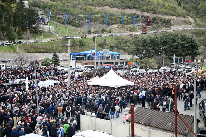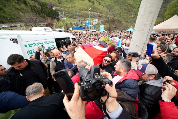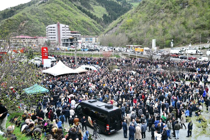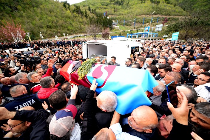 Konak’ın üzeri Türk bayrağı, Trabzonspor forması ve mimoza çiçekleriyle örtülen tabutu, tören alanına sevenlerinin omuzlarında ve gözyaşları eşliğinde taşındı.
