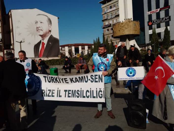 Türkiye genelinde olduğu gibi Rize’de de memur ve emeklileri temsilen Türkiye Kamu -SEN Rize Türk Eğitim-Sen başkanlığı tarafından, enflasyon farkları, memur emeklisine yapılacak zamlarla ilgili bir basın açıklaması yapıldı