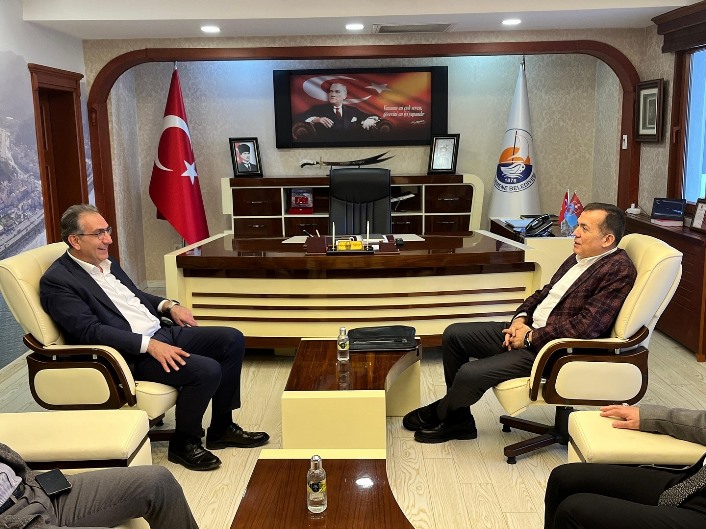 Mersin’in Yenişehir Belediye Başkanı Trabzon Sürmeneli Abdullah Özyiğit, memleketine ziyarete geldi. Özyiğit, Sürmene Belediye Başkanı Hüseyin Azizoğlu’nu makamında ziyaret etti. Azizoğlu, “Hemşehrimiz Mersin Yenişehir Belediye Başkanımız Abdullah Özyiğit’i baba ocağında ağırladık. Çocukluğu ve gençliği Sürmene’mizde geçen başkanımız, 35 senedir Mersin’e eczacı olarak hizmet veriyor. 6 senedir de belediye başkanı olarak Yenişehir halkının hizmetinde. Başkanımıza ziyareti için çok teşekkür ediyorum” dedi. Yenişehir Belediye Başkanı Abdullah Özyiğit, “Sürmene ata, baba topraklarım. Ömrümün en güzel yılları Sürmene’de geçti. Hayat şartları gereği yaşamımın 22 yılını geçirdiğim topraklardan Mersin’e gitmem gerekti. Doyduğum yerde ülkeme hizmet etmek nasip olsa da doğduğum toprakları da asla unutmuyor ve ihmal etmiyorum. Sık sık geliyorum. Başkanımız Hüseyin Azizoğlu ile de geçmişe dayalı dostluğumuz var. Birlikte güzel bir sohbet ettik” diye konuştu.