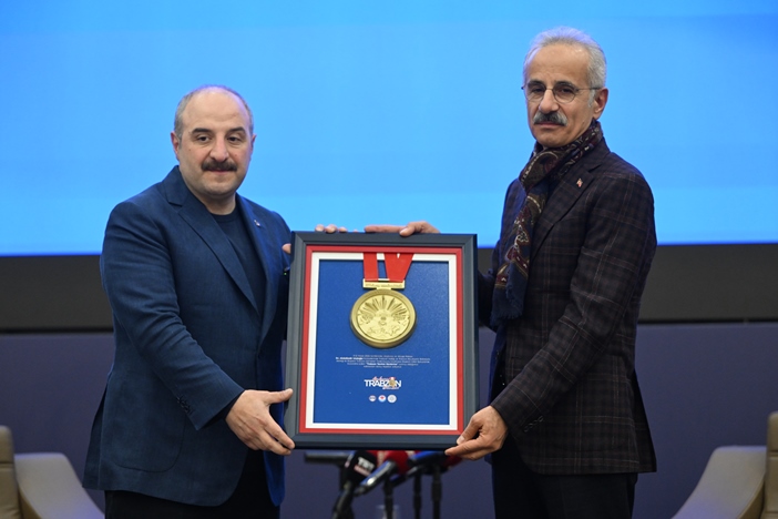 Bakan Uraloğlu programın sonunda Varank’a Trabzon’un İstiklal madalyası tablosunu hediye etti.