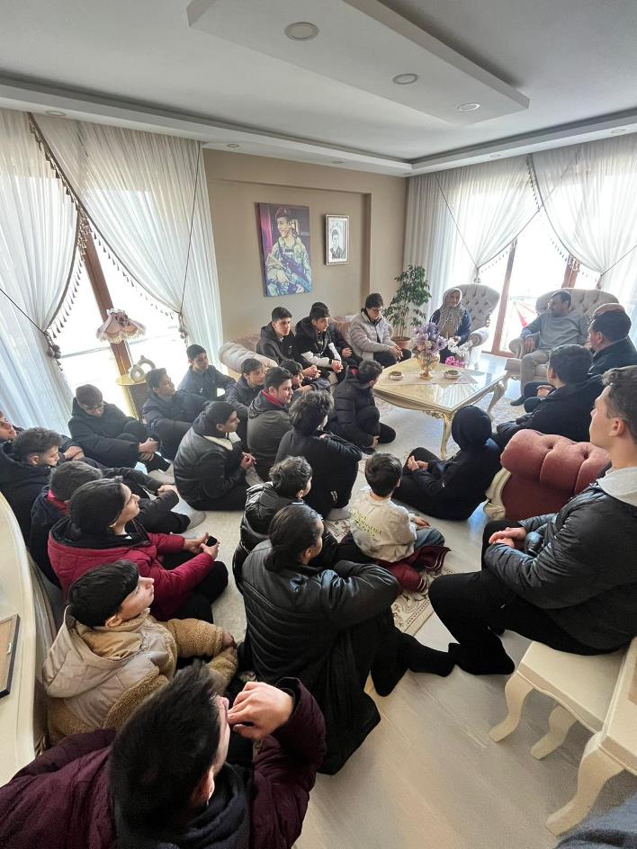 Ziyaret programının devamında aziz şehidimiz Ünal Bıçakçı’nın kıymetli ailesinin evine konuk olundu. Şehidimizin babası Selahattin Bıçakçı ve annesi Melek Bıçakçı ile bir araya gelen öğrenciler, şehidin hayatını, hatıralarını ve geride bıraktığı onurlu mirası aile bireylerinden dinleme fırsatı buldu. Duygusal anların yaşandığı ziyarette, şehit ailesinin vakur duruşu ve güçlü vatan sevgisi öğrencileri derinden etkiledi.