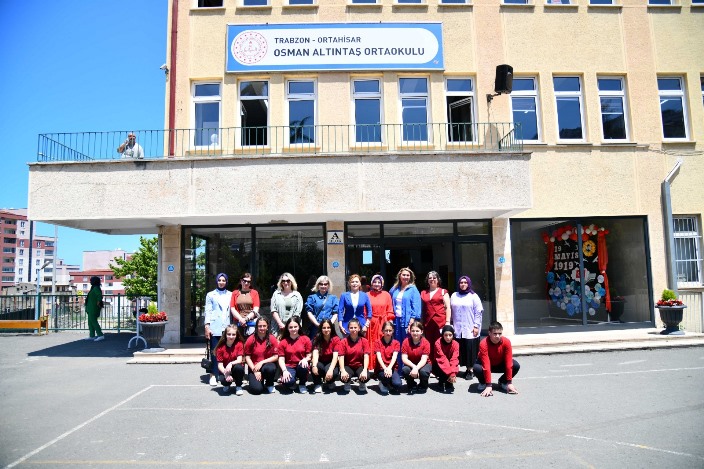 Sıfır Atık Projesi uygulamaları kapsamında Osman Altıntaş Ortaokulu’nda 75 kg mavi kapak toplanırken, ambalaj atıkları, atık yağlar ve atık pillerin ayrı toplanması konusunda öğrencilere uygulamalı eğitimler verildi. Öğrenciler ve velilerle birlikte yürütülen çalışmalar sayesinde evsel atıkların okula getirilmesi sağlanarak sürdürülebilir bir geri dönüşüm modeli oluşturuldu. Bu örnek çalışmaları yürüten ve sıfır atık ilkelerini okul kültürüne başarıyla entegre eden Okul Müdürü Gamzegül Engin ve öğretmenler Mihrap Çağla Holoğlu, Bahriye Duman, Seval Cora ve Muhammed Ünlü’ye Ortahisar Belediyesi İklim Değişikliği ve Sıfır Atık Müdürü Ezgi Kazan tarafından teşekkür belgesi verildi.