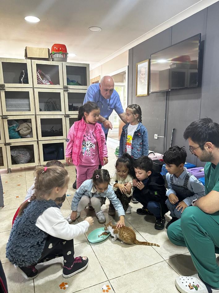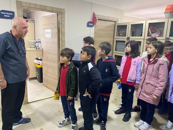 Veteriner İşleri Müdürlüğü’nün koordinasyonunda gerçekleşen ziyarette, öğrenciler klinikteki tedavi süreçleri, aşılama ve sahiplendirme çalışmaları hakkında bilgilendirildi. Kliniği gezme ve buradaki hayvanlarla vakit geçirme imkânı bulan öğrenciler, hem eğlendi hem de sokak hayvanlarına karşı duyarlılık kazandı.