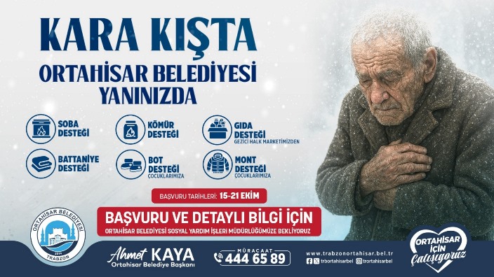 Kış destek paketi kapsamındaki yardımlardan faydalanmak isteyen vatandaşların, 15-21 Ekim tarihleri arasında Ortahisar Belediyesi Sosyal Hizmetler Müdürlüğü’ne müracaat etmeleri veya 444 65 89 numaralı telefondan başvuru yapmaları gerekiyor. Başvuruların ardından yapılacak değerlendirme sonrası, kış destek paketleri ihtiyaç sahibi vatandaşlara ulaştırılmaya başlanacak.