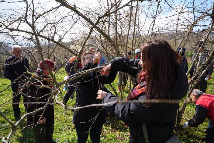 Fındık üretiminde verim artışı, kaliteli ürün elde edilmesi ve doğru tarım uygulamalarının yaygınlaştırılması amacıyla düzenlenen eğitim programında üreticilere, fındıkta doğru budama yöntemleri, budama yapılırken dikkat edilmesi gereken hususlar, budama dönemleri, ocak seyrekleme, yeni fidan dikimi, gübreleme yöntemleri, gübreleme yapılırken dikkat edilmesi gereken hususlar, gübre çeşitleri, gübreleme dönemleri, toprak analizi, ocak temizliği konuları, uygulamalı olarak anlatıldı.
