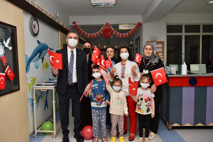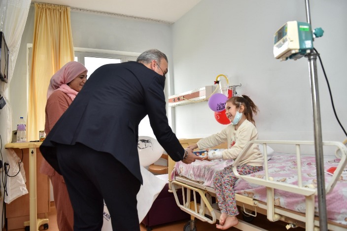 Bayramda sağlık sorunları nedeniyle arkadaşlarından ve okullarından uzak kalan çocukları da unutmadıklarını dile getiren Başkan Kaya, “Hastanede tedavi gören, arkadaşlarıyla koşup oynayamayan, çocuk festivalimize katılamayan yavrularımızın da bayram coşkusunu bir nebze olsun yaşaması için, kendilerini ziyaret ettik, küçük hediyelerle sevindirmek istedik. İnşallah bu yavrularımız da tedavilerini en kısa sürede tamamlayıp aramızda olacaklar ve arkadaşlarıyla koşup oynayacaklar. Bütün çocuklarımızı 27 Nisan Pazar gününe kadar devam edecek Çocuk Kitap Fuarı ve Çocuk Festivali’ne katılmaya davet ediyor, bayramlarını kutluyorum” diye konuştu.