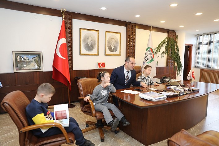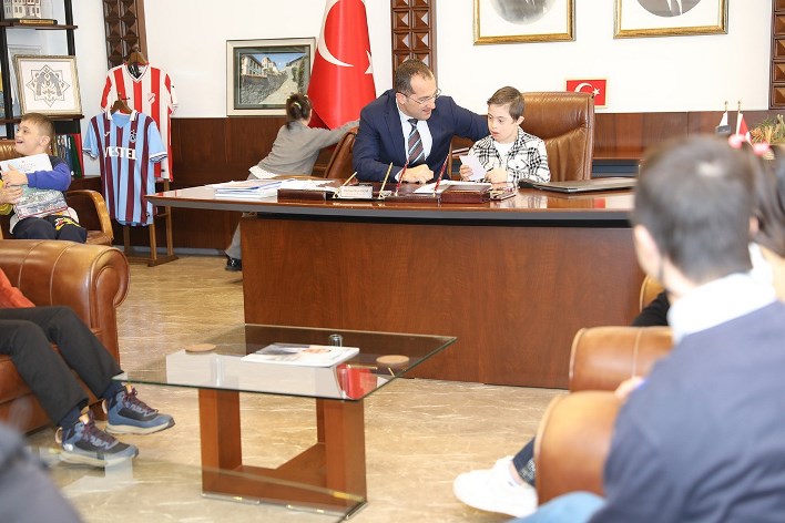 Akçaabat Sarıtaş Özel Eğitim Okulu’ndan 15 özel gereksinimli çocuk, Akçaabat Belediye Başkanı Osman Nuri Ekim’i ziyaret etti. Minik misafirler, belediye binasına adım attıkları anda Başkan Ekim tarafından güler yüzle karşılandı.