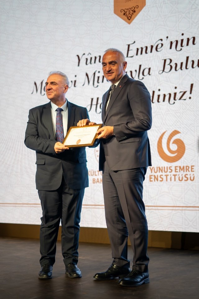 Yunus Emre Enstitüsü tarafından düzenlenen programda tarihteki en eski Yunus Emre eserini ortaya çıkaran RTEÜ Fen-Edebiyat Fakültesi Türk Dili ve Edebiyatı öğretim üyesi Prof.Dr. Orhan Kemal Tavukçuoğlu’na Kültür ve Turizm Bakanı M.Nuri Ersoy tarafından teşekkür belgesi verildi.
