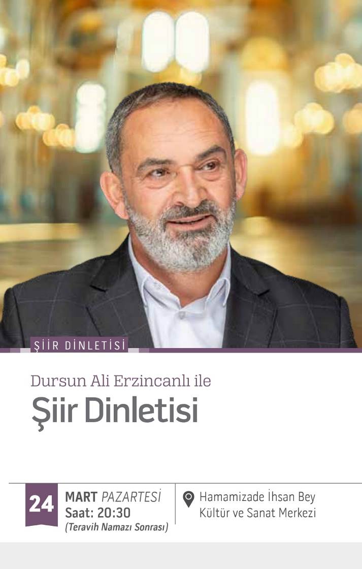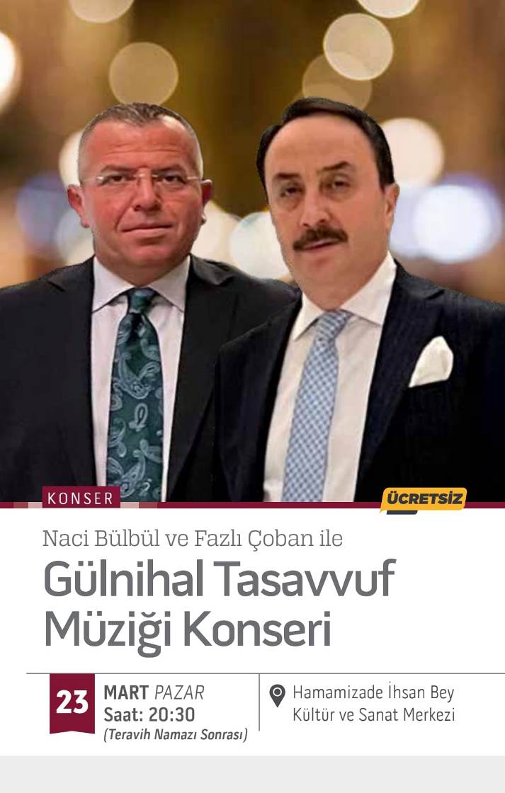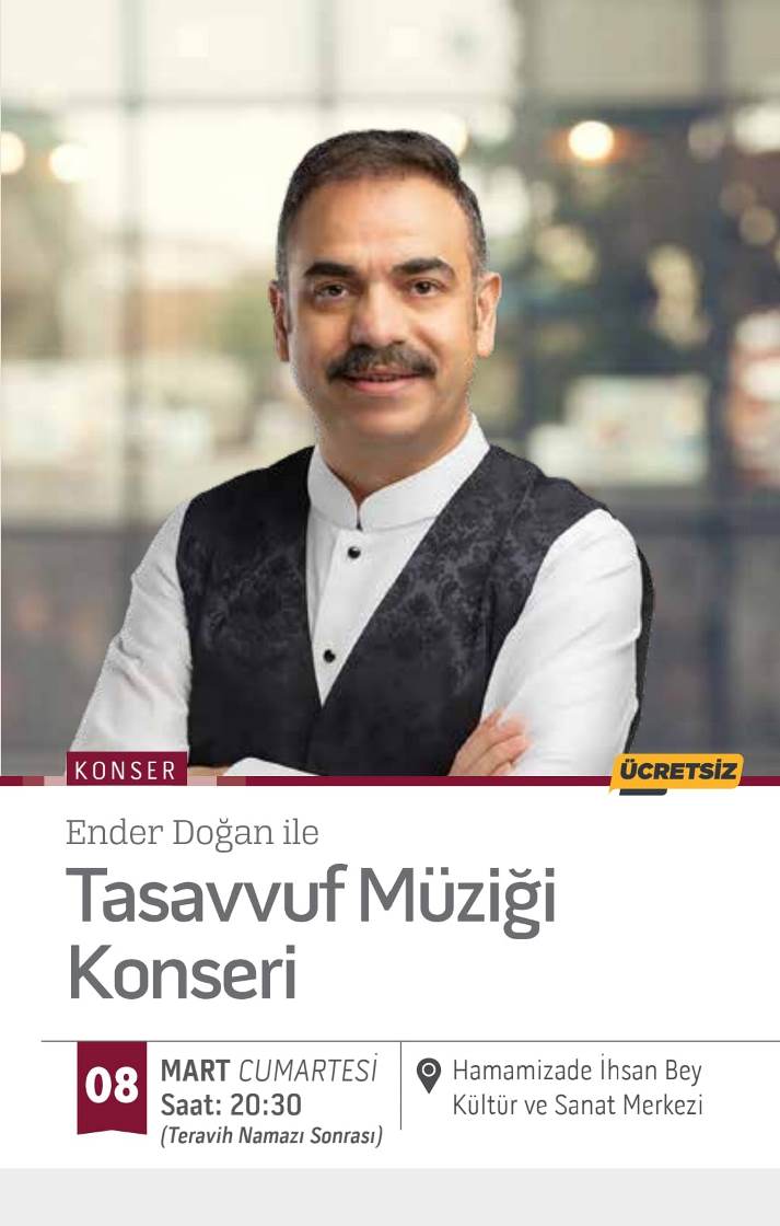 Ramazan ayı boyunca tasavvuf müziğinin önemli isimleri de Trabzon’da sahne alacak. 8 Mart Cumartesi akşamı Ender Doğan, 22 Mart Cumartesi akşamı Sedat Uçan ve 23 Mart Pazar akşamı Naci Bülbül ile Fazlı Çoban, Hamamizade İhsan Bey Kültür Merkezi’nde dinleyicilerle buluşacak. 15 Mart Cumartesi akşamı ise Mustafa Cihat’ın katılımıyla bir ezgi dinletisi düzenlenecek.