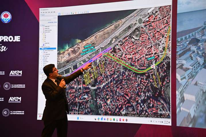 Eyigün, “Şimdi biz tramvay mı metro mu diye baktığımızda aslında burada tramvay ismi ile yola çıkıldı ama karakteristiği itibariyle artık metrolaştı. Arazi şartları yeraltını kullanmayı zorunlu kıldı. Tam sinyalize, tam otomatik, makinist inisiyatifini geride bıraktığımız manuel kullanımı olmayan, dolayısıyla bunları birleştirdiğimizde metrolaşmış bir raylı sistem ortaya çıktı. Tramvayın ortalama hızı yer yer 15 kilometreye, 20 kilometreye düşer. Yani birinci viteste giden bir araçtır, karışık trafiktir, karayolunu etkiler, karayolundan etkilenir. Halbu ki biz burada Trabzonluya raylı sistemi tercih etmesi ve hızlı bir şekilde erişim sağlayabilmesi için ortalama hızını yükselttiğimiz diğer modlarla çakışmayan bir sistemi hedeflemiş olduk. Bu da aslında karakteristikleri itibariyle bize, metro karakteristiğine dönüştürmüş bulunduğumuz bir raylı sistem gösterdi. Bu anlamda tüm paydaşlara, arazilerini kullandığımız ya da arazilerini kullanma ile ilgili erişimle ilgili fikir veren tüm paydaşlarımıza teşekkür etmek istiyoruz” dedi.