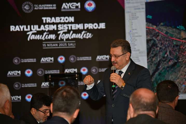 Trabzon Büyükşehir Belediye Başkanı Ahmet Metin Genç, “Bugün, şehrimizin şehir içi ulaşımı açısından büyük önem taşıyan ve seçim döneminde birinci sözümüz olarak taahhüt ettiğimiz şehir içi raylı sistem projemizin tanıtım toplantısında bir araya gelmiş bulunuyoruz. Trabzon’u detaylı şekilde analiz ettiğimizde, özellikle şehir içi ulaşım standartlarının yükseltilmesi, daha konforlu bir ulaşım sağlanması ve toplu taşımayı teşvik etmek adına yapılan çalışmaların öne çıktığını görmekteyiz. Bu çalışmalardan en önemlisi de raylı sistem projemizdir. Bu projeyi sizlere seçim sürecinde birinci sözümüz olarak duyurmuştuk. O gün kamuoyuna, ‘Bu işi ay, gün ve saat saat takip edeceğim’ diyerek bir taahhütte bulunmuştum. Hamdolsun, bugün geldiğimiz noktada bu sözümüzü adım adım hayata geçirmenin gururunu yaşıyoruz. 4 Nisan’da mazbatamızı aldıktan sonra, 24 Nisan’da çok kıymetli genel müdürümüzün de teşrifleriyle belediyemizde ilk protokolümüzü imzaladık. Ardından, 13 Ağustos 2024 tarihinde projemiz Cumhurbaşkanlığı Strateji ve Bütçe Başkanlığı’ndan onay aldı. Hızlı ve kararlı bir takip sürecimizin sonucunda, 12 Ekim 2024 tarihinde de uygulama projesinin ihalesini gerçekleştirdik. Yüksel Proje firmamıza yer teslimini süratle tamamladıktan sonra, uygulama projesi ve güzergah çalışmaları eş zamanlı olarak başlatıldı” dedi.