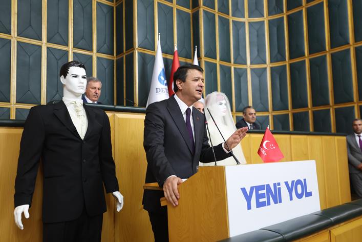 Evlenemeyen gençlerin ve ailelerinin çaresizliğine dikkat çeken Arıkan, “İşte bu ekonomik tablodan dolayı ‘Aile Yılı’nda, gençlerimiz aile kuramıyor! İşte bu yüzden yanımdaki gelinlik ve damatlık, gençlerimizin hayallerinde kalıyor! Sayın Aile Bakanı diyor ya: ‘Seviyorsan, git evlen!’ Sayın Bakan, gençlerimiz seviyor ama evlenemiyor!” şeklinde konuştu.