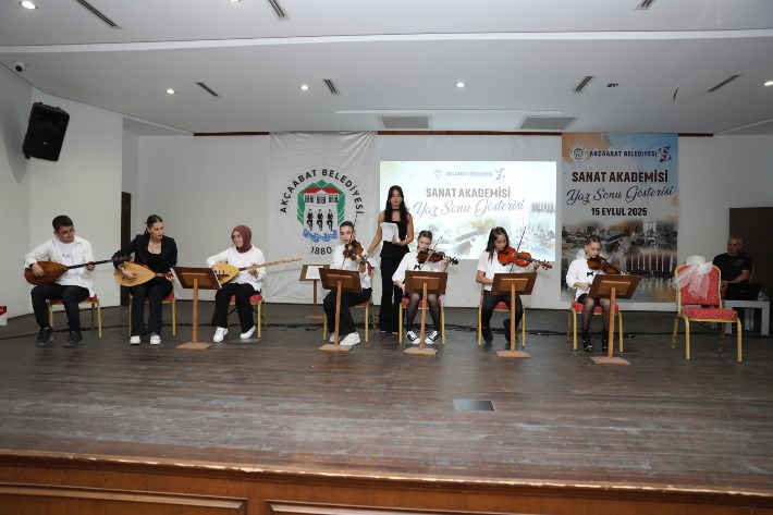 Akçaabat Belediyesi Sanat Akademisi’nde yıl boyunca eğitim gören öğrenciler, yaz sonu gösterisiyle sahne aldı. Kültür ve Sosyal İşler Müdürlüğü Hamamçimeni Salonu’nda düzenlenen etkinlikte öğrenciler;