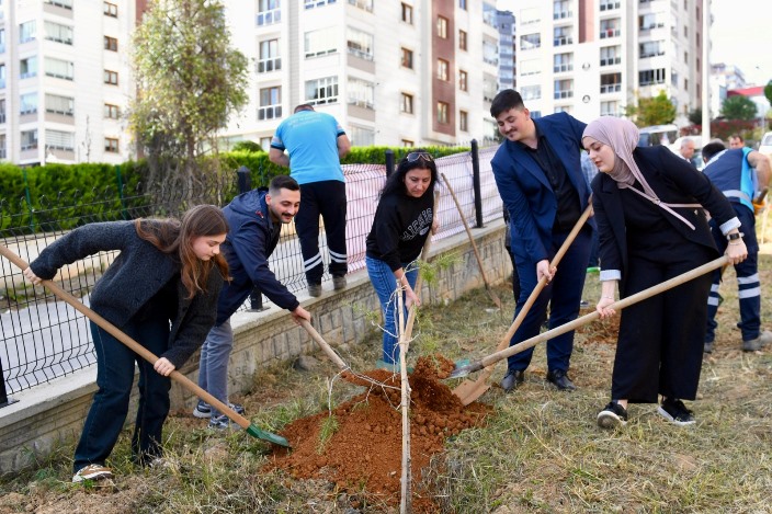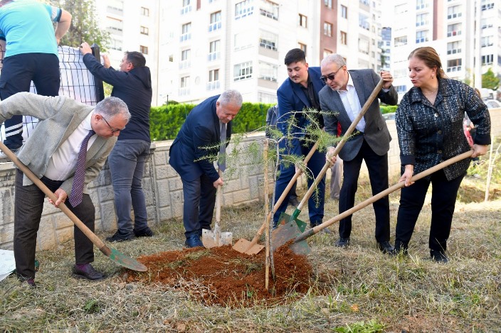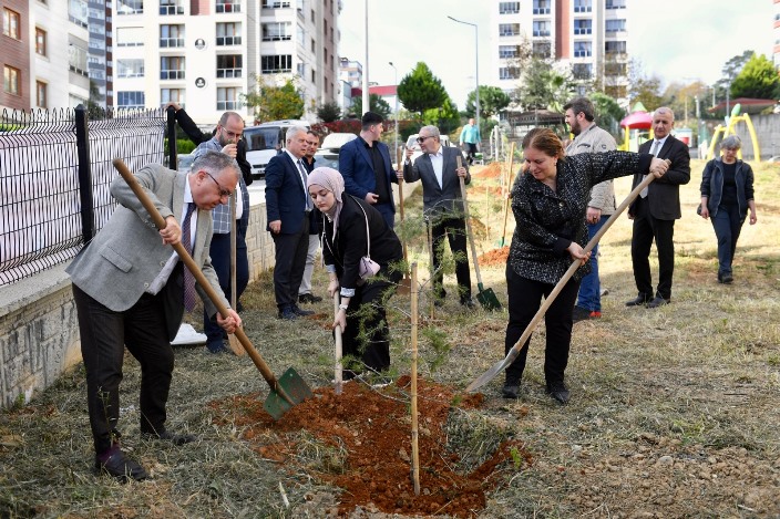Konuşmaların ardından katılımcılar, 16 çam fidanını toprakla buluşturdu.