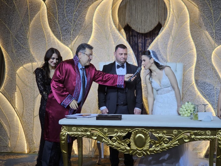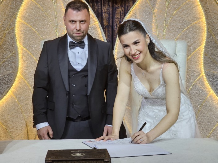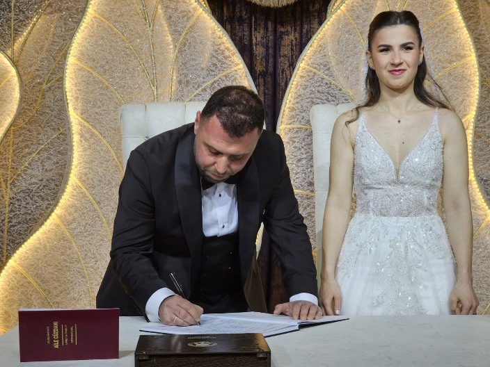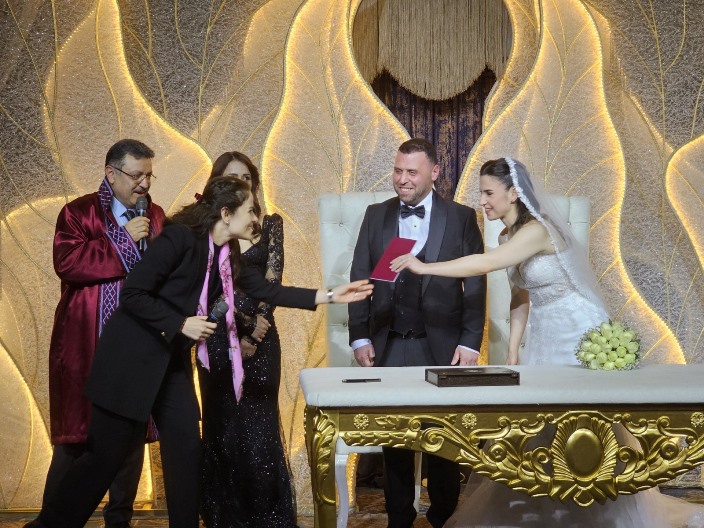 Sezin ile Orkun’un nikâhını Trabzon Büyükşehir Belediye Başkanı Ahmet Metin Genç kıydı. Genç çiftlerin nikah şahitliklerini ise Burcu Topuz, Egemen Mehmet, Can İhsan Bozbaş ve Ayşe Dülger yaptı. Büyükşehir Belediye Başkanı Ahmet Metin Genç kıydığı nikahın ardından genç çifte ömür boyu mutluluklar dileyerek hediyesini takdim etti.