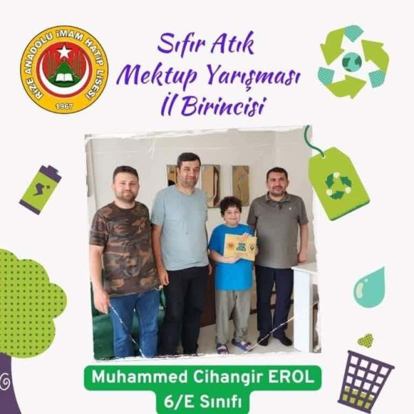 Ziyarette Sıfır Atık” Mektup Yarışması’nda İl Birincis olan Muhammet Cihangir Erik’e 7.000 TL para ödülü,Okuma kitapları hediyesi sunularak başarısı kutlandı.