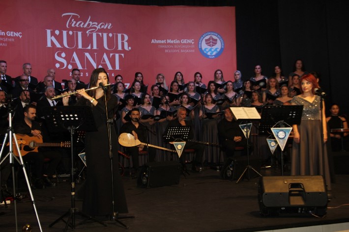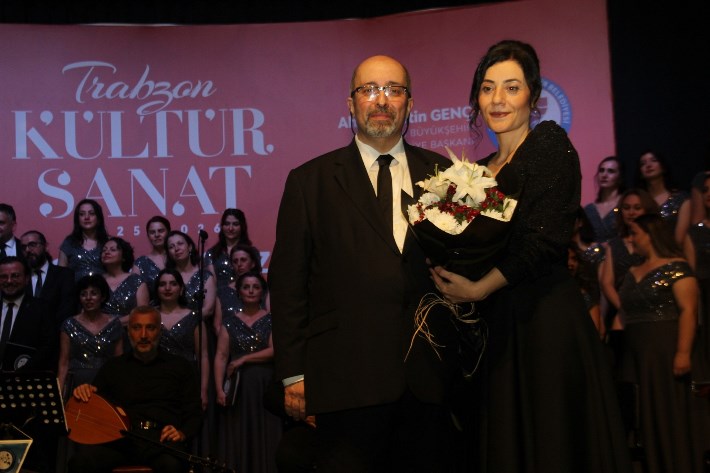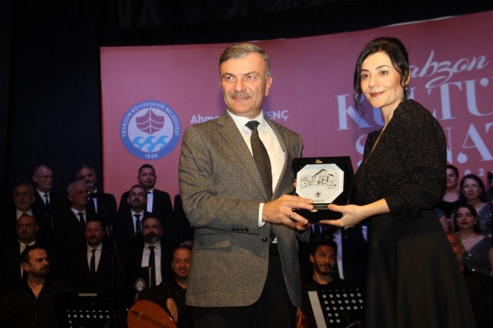Muhteşem gecenin sonunda Trabzon Büyükşehir Belediyesi Kültür, Sanat ve Sosyal İşler Dairesi Başkanı Erdem Zekeriya İskenderoğlu, Şef Hanife Sümer’e plaket takdim ederken; dernek başkanı Dr. İsmet Sadi Ülker de teşekkür çiçeğini sundu.