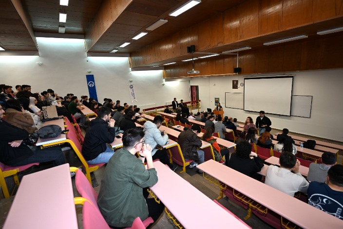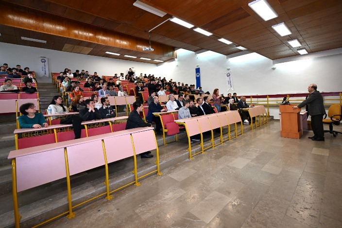 KTÜ Rektörü Prof. Dr. Hamdullah Çuvalcı’ya makamında gerçekleştirdiği ziyaretin ardından KTÜ Mühendislik Fakültesi Makine Mühendisliği Bölümü MA2 Amfisi’nde öğrencilerle bir araya geldi. Programa Rektör Prof. Dr. Hamdullah Çuvalcı’nın yanı sıra Mühendislik Fakültesi Dekanı Prof. Dr. Temel Varol, Makine Mühendisleri Odası Trabzon Şube Başkanı Ufuk Bulut, akademisyenler ve öğrenciler katıldı.