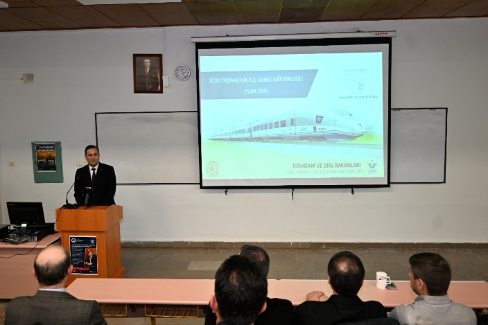 Genel Müdür Yalçın ise öğrencilerimizi TCDD Taşımacılık A.Ş. hakkında bilgilendirerek “Bugün dünyada söz sahibi, kendi teknolojisini kendisi geliştirebilen en önemlisi özgüven patlaması yaşayan, Türkiye’yi bulunduğu noktadan daha iyi noktalara taşıyabilecek bir nesil var” dedi. KTÜ mezunu olmanın önemine değinen Genel Müdür Ufuk Yalçın, “Tüm attığımız adımlarda, KTÜ mezunlarına yakışır hareket ediyor, her zaman tercih edilir iş tutumu ile vatan ve bayrak sevgisi ile öne çıkıyoruz.” ifadelerini kullandı.